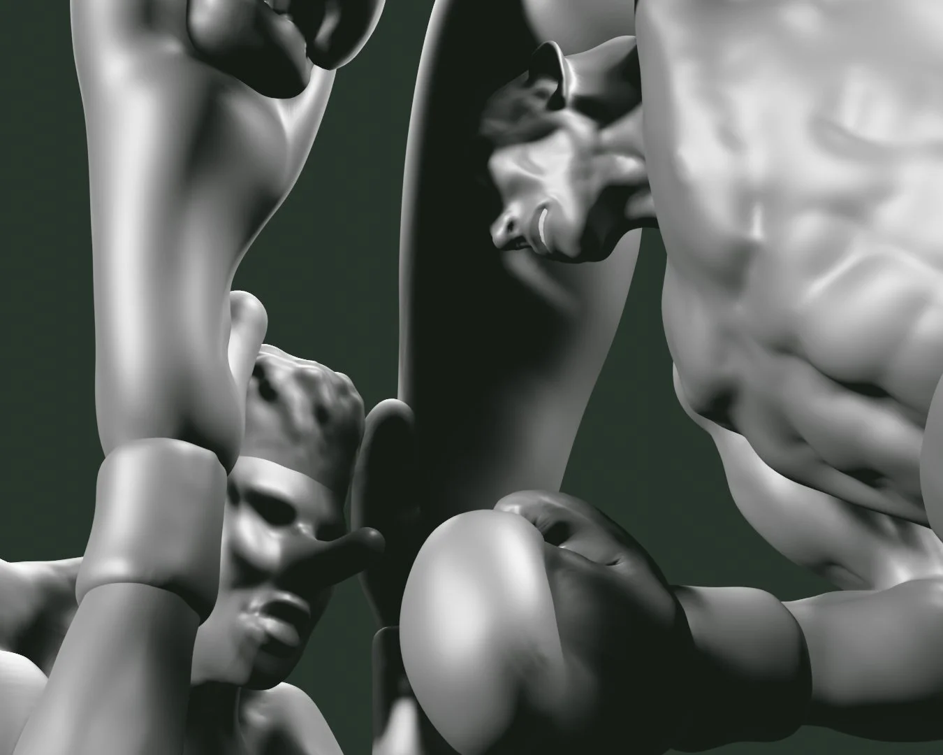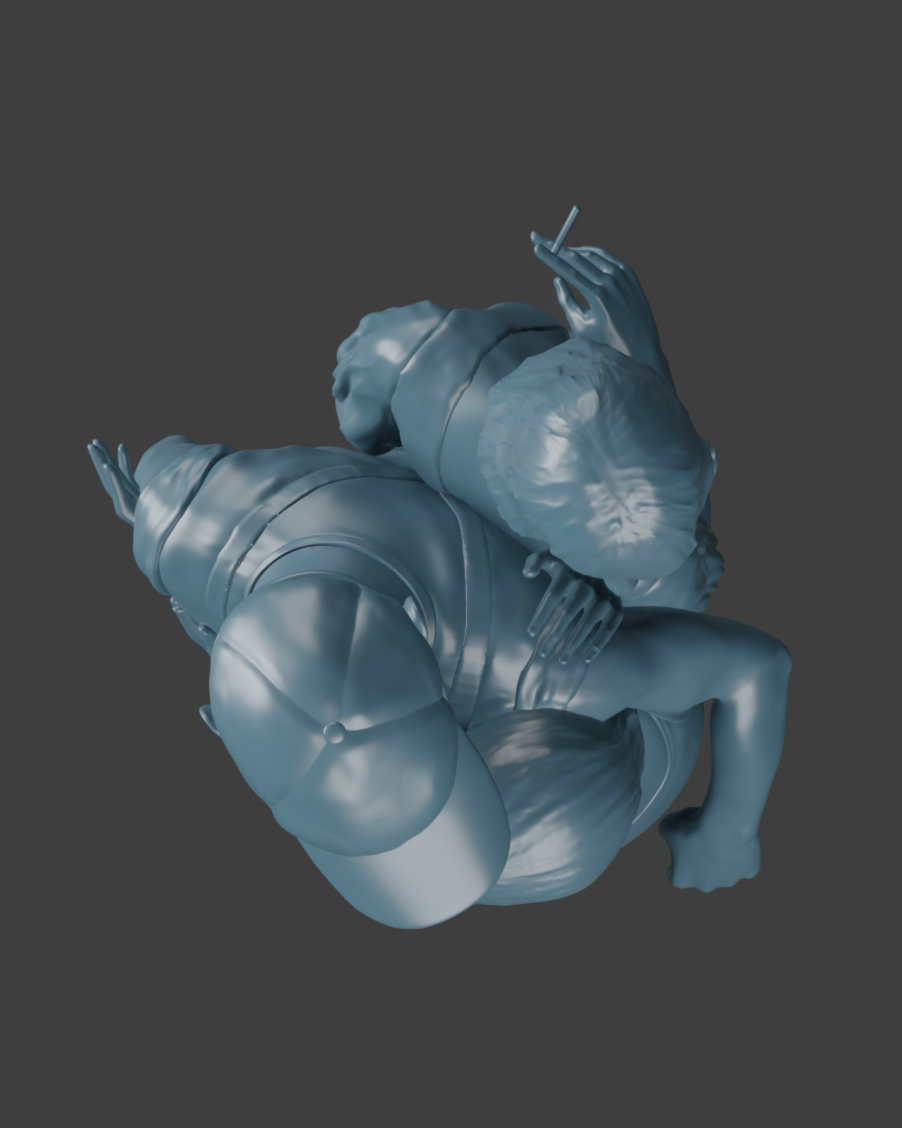Modelado de escultura de gran formato para posterior impresión y exposición en espacio público urbano. Se contó con bocetos bidimensionales aproximados, aportados por el artista al inicio, específicamente realizados para dicho proceso. Tras una primera interpretación tridimensional, el artista fue proporcionando nuevas referencias visuales e indicaciones que acabaron de ajustar la pieza a su forma final.